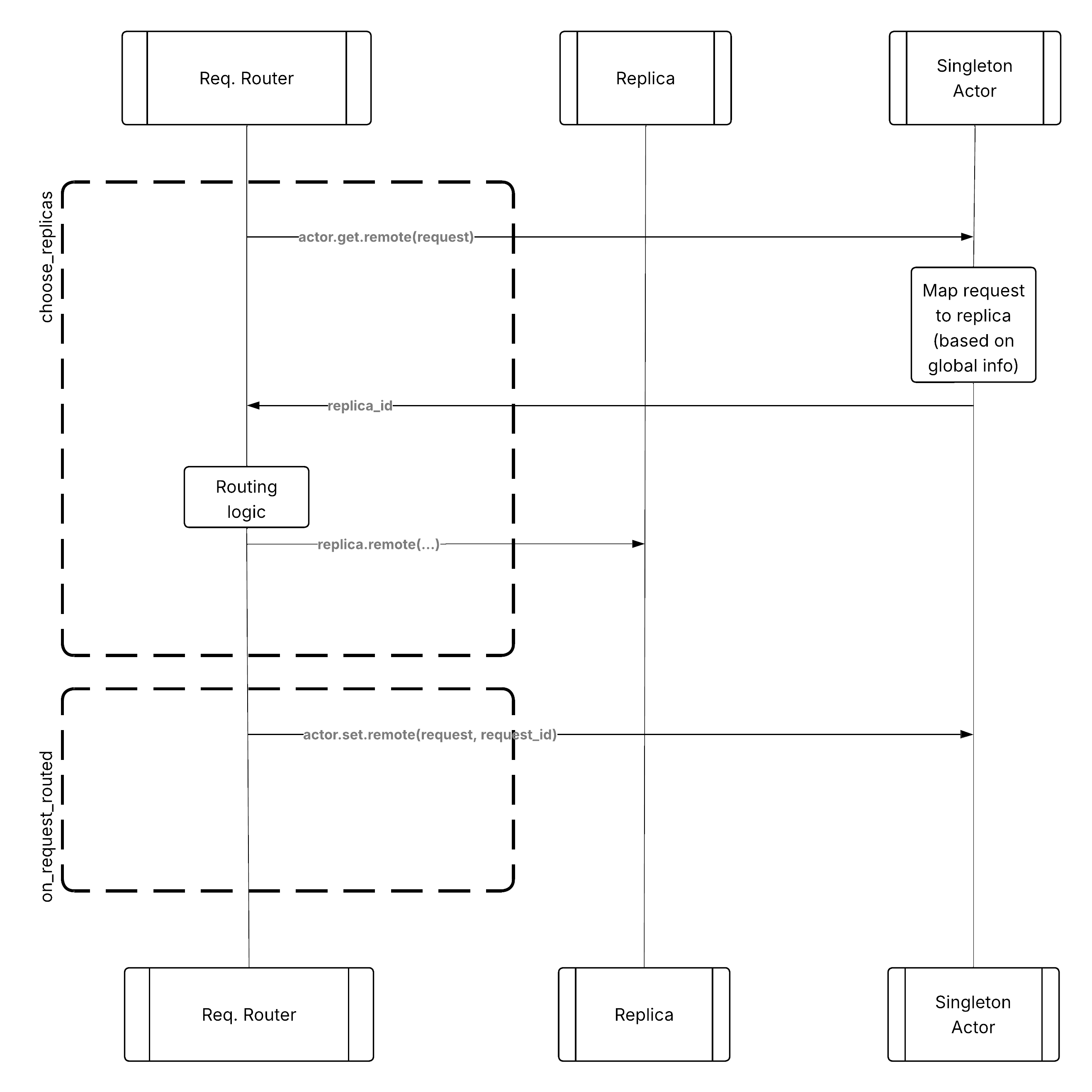 choose_replicas(): Select which replicas should handle a request.on_request_routed(): Update the router state after a request is routed.on_replica_actor_died(): Clean up the state when a replica dies.